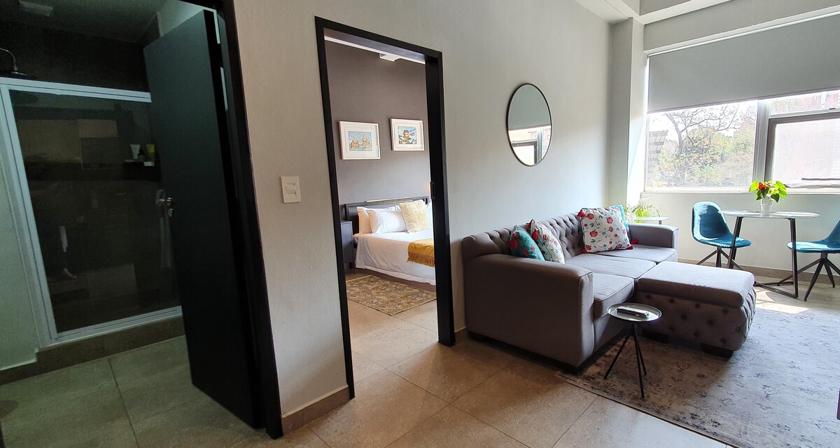 Charming 1-bedroom, 1-bathroom apartment close to Sandton City, priced at R 17 730.00 per month.